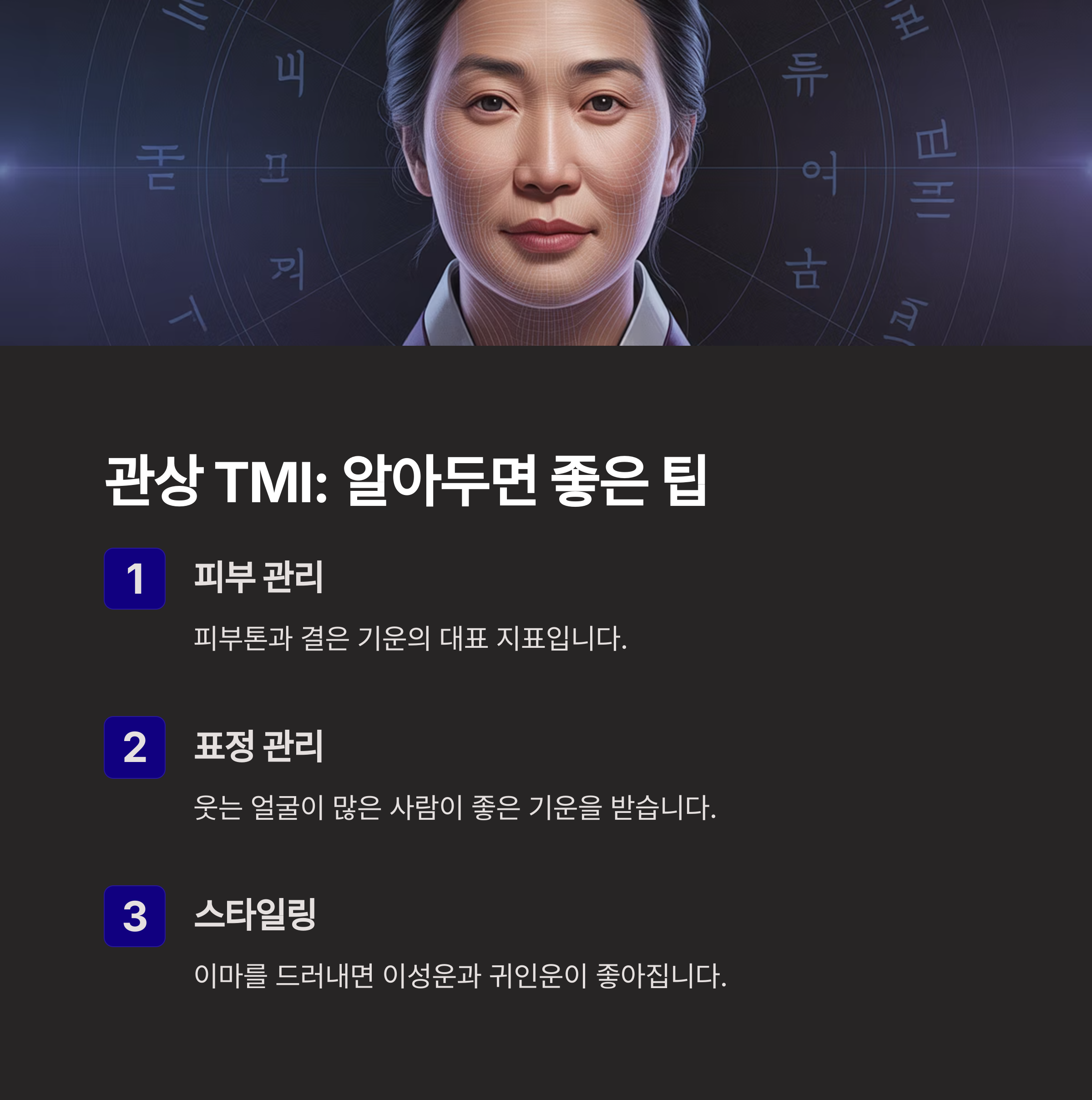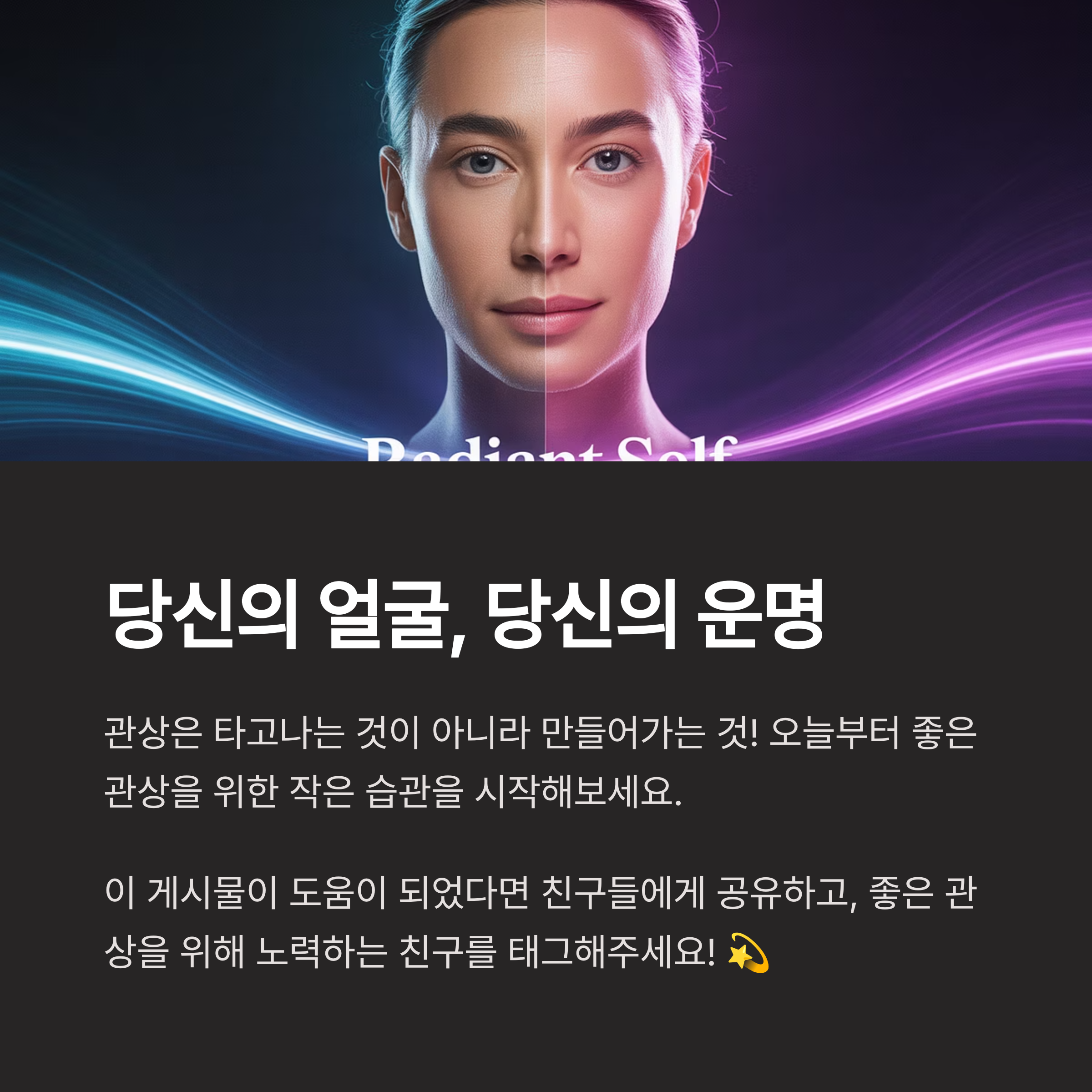 관상은 타고나는 것이지만, 후천적인 노력으로 충분히 개선할 수 있습니다. 작은 실천이 큰 변화를 만듭니다!