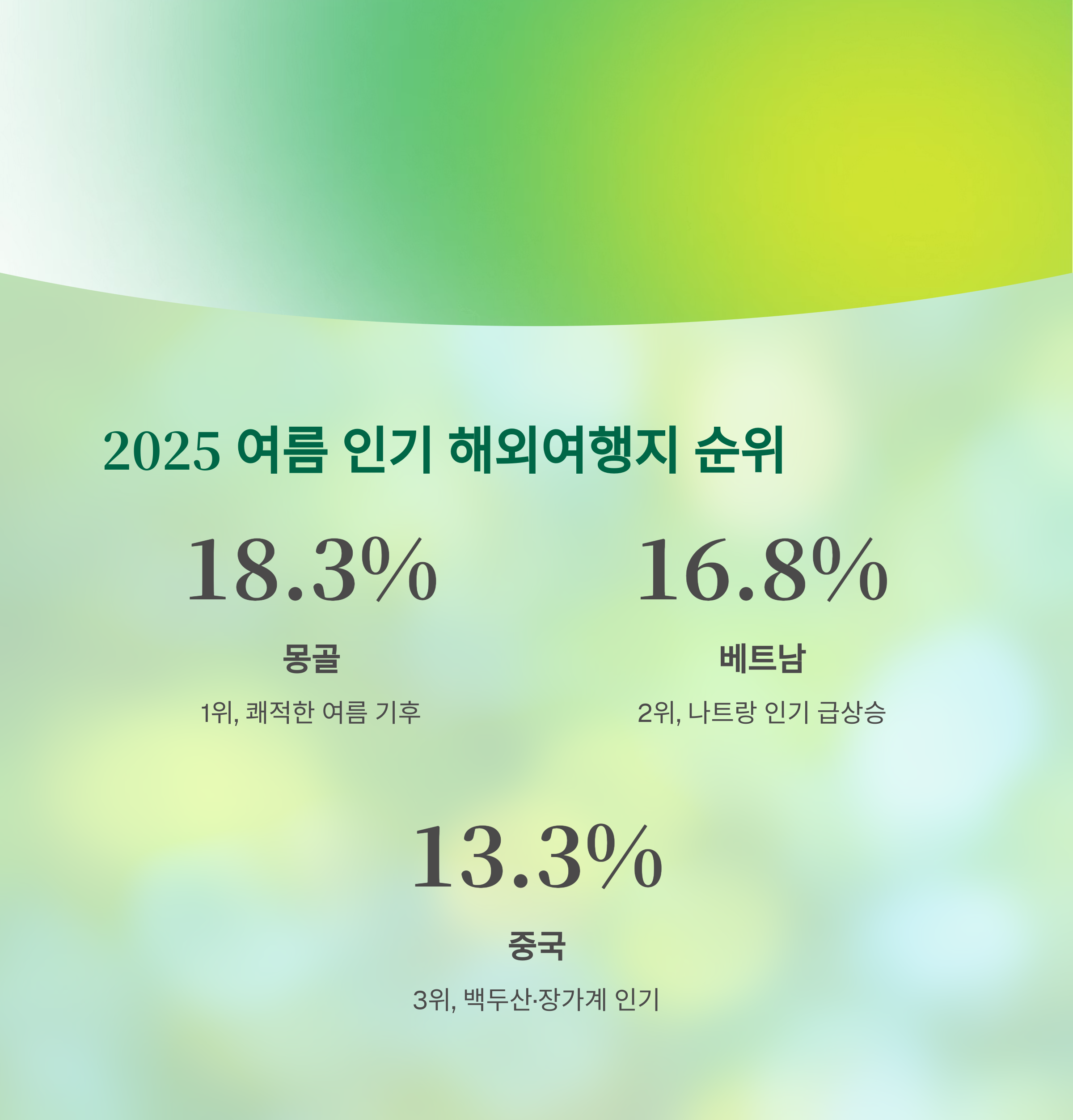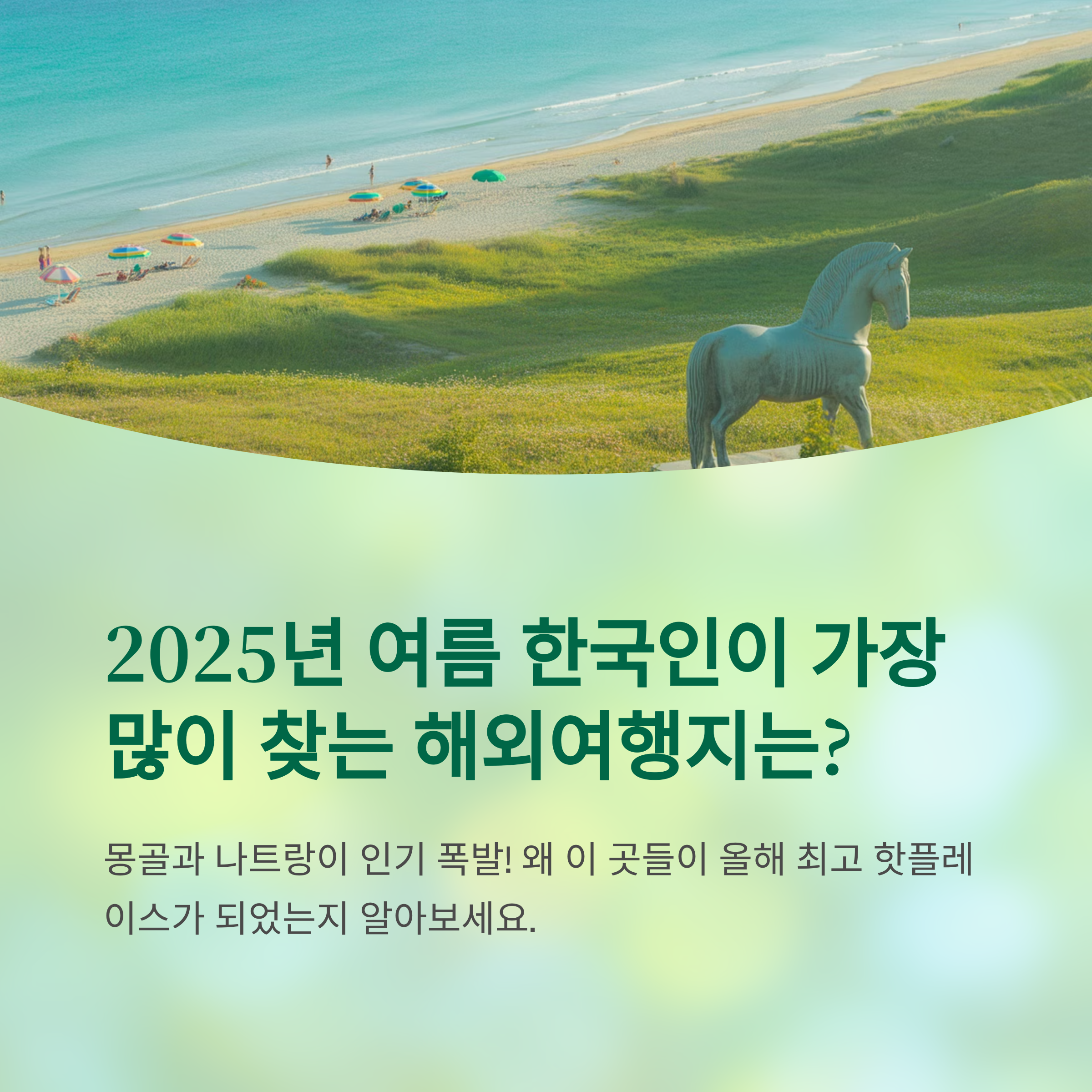 1. 2025 여름 한국인 인기 해외여행지 순위