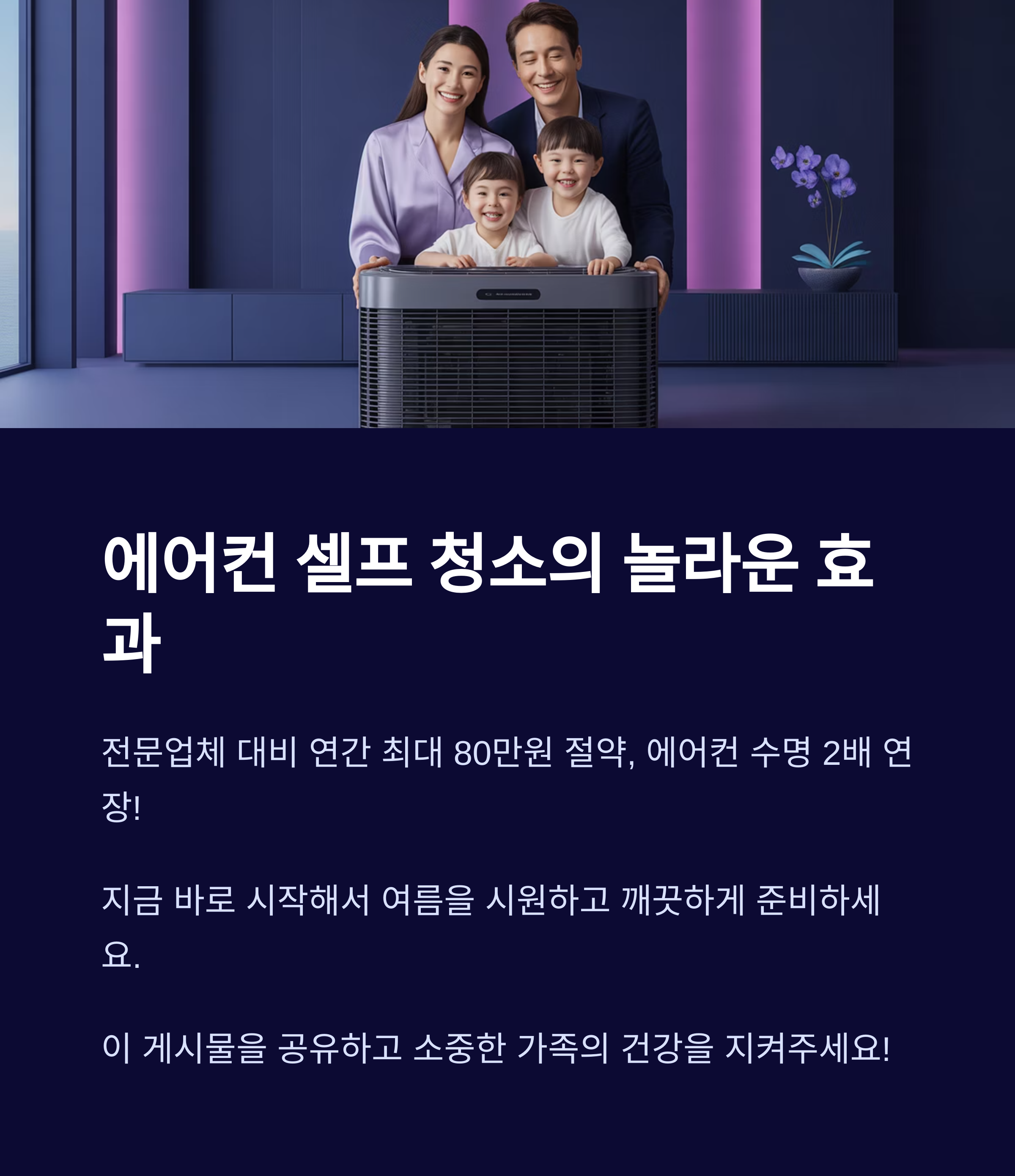 에어컨 수명 2배 연장 효과도 함께 기대할 수 있습니다.