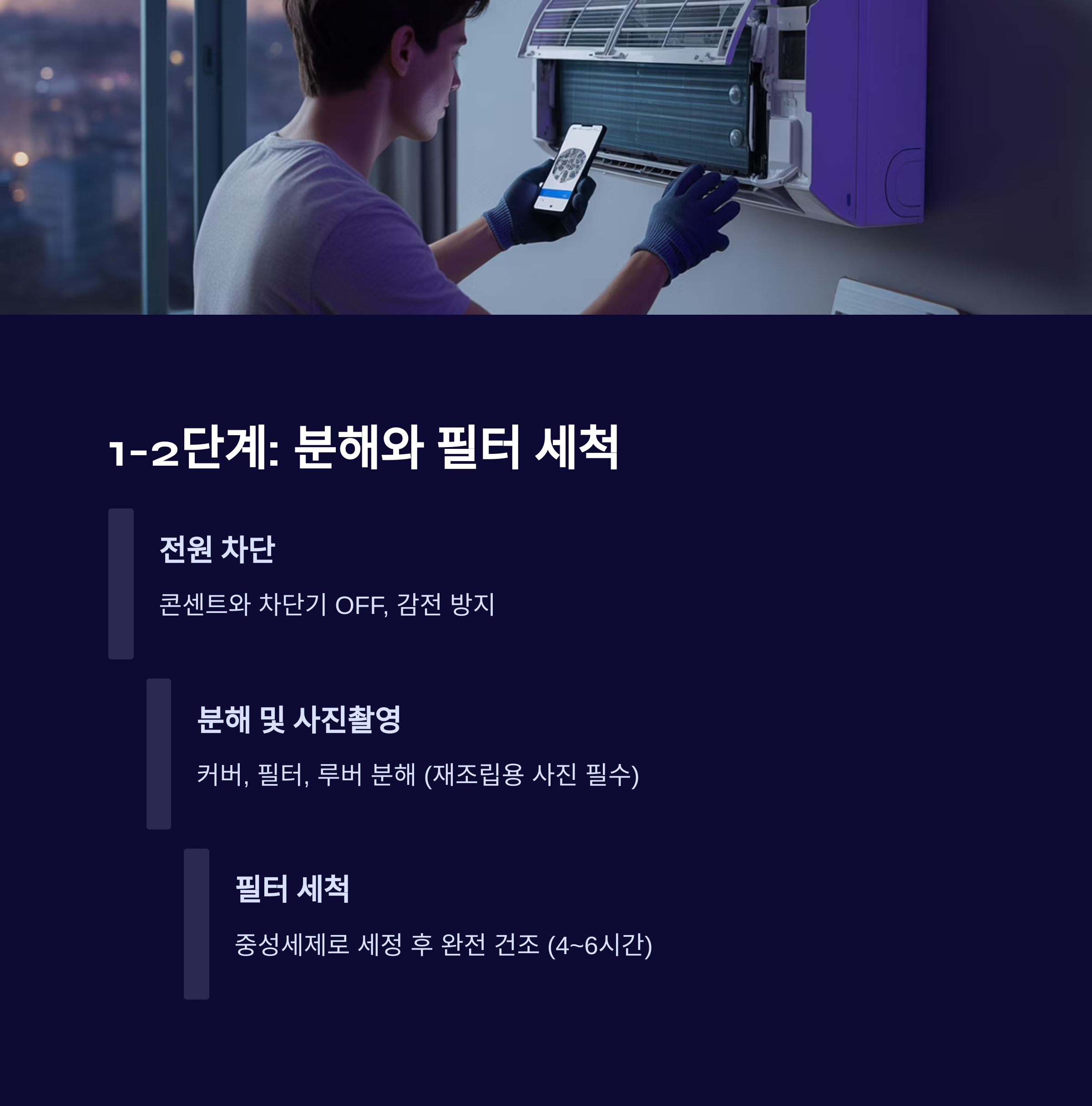 지금부터 단계별로 안전하고 효과적인 벽걸이 에어컨 청소법을 안내해 드릴게요.