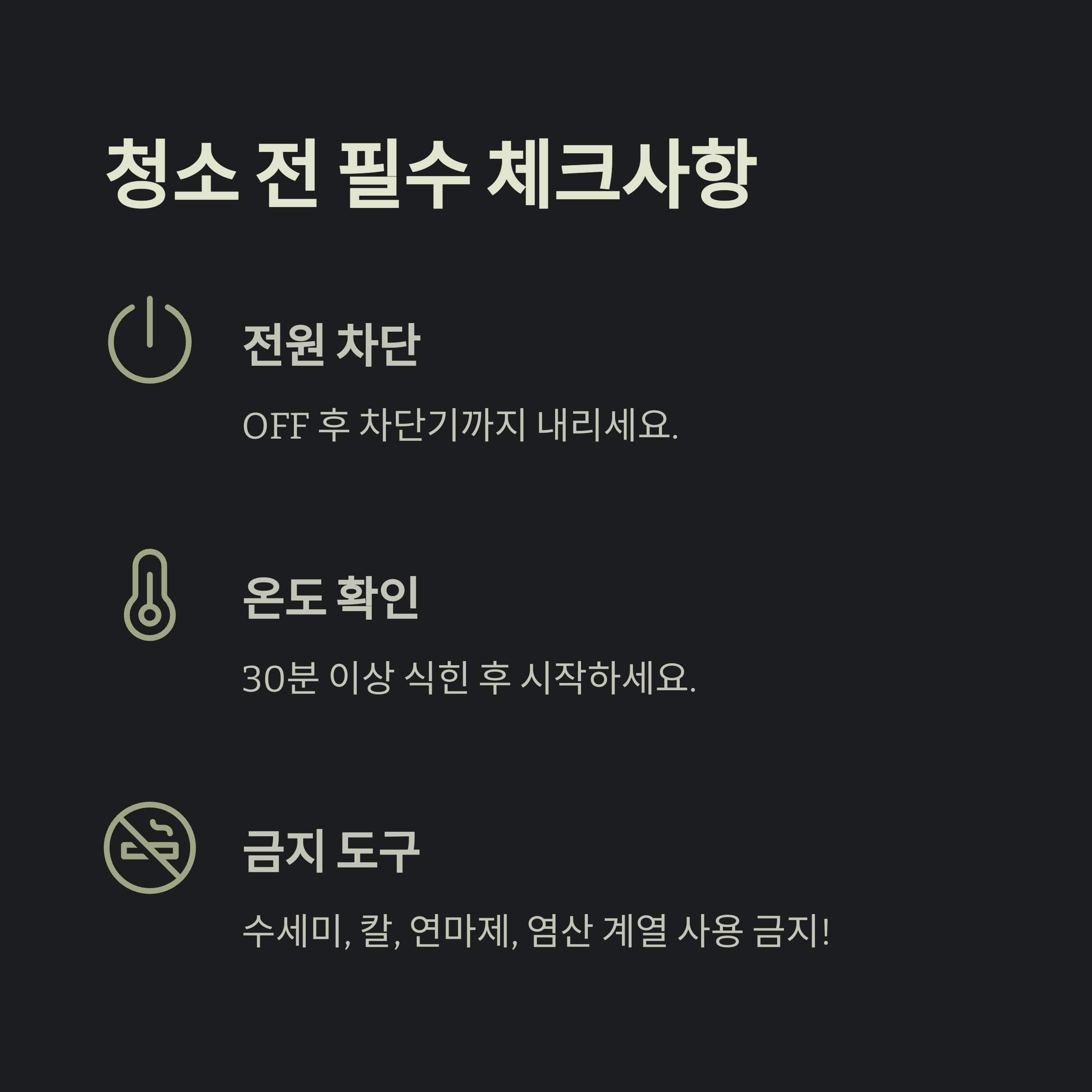 청소 전 가장 중요한 것은 전원 차단입니다.
