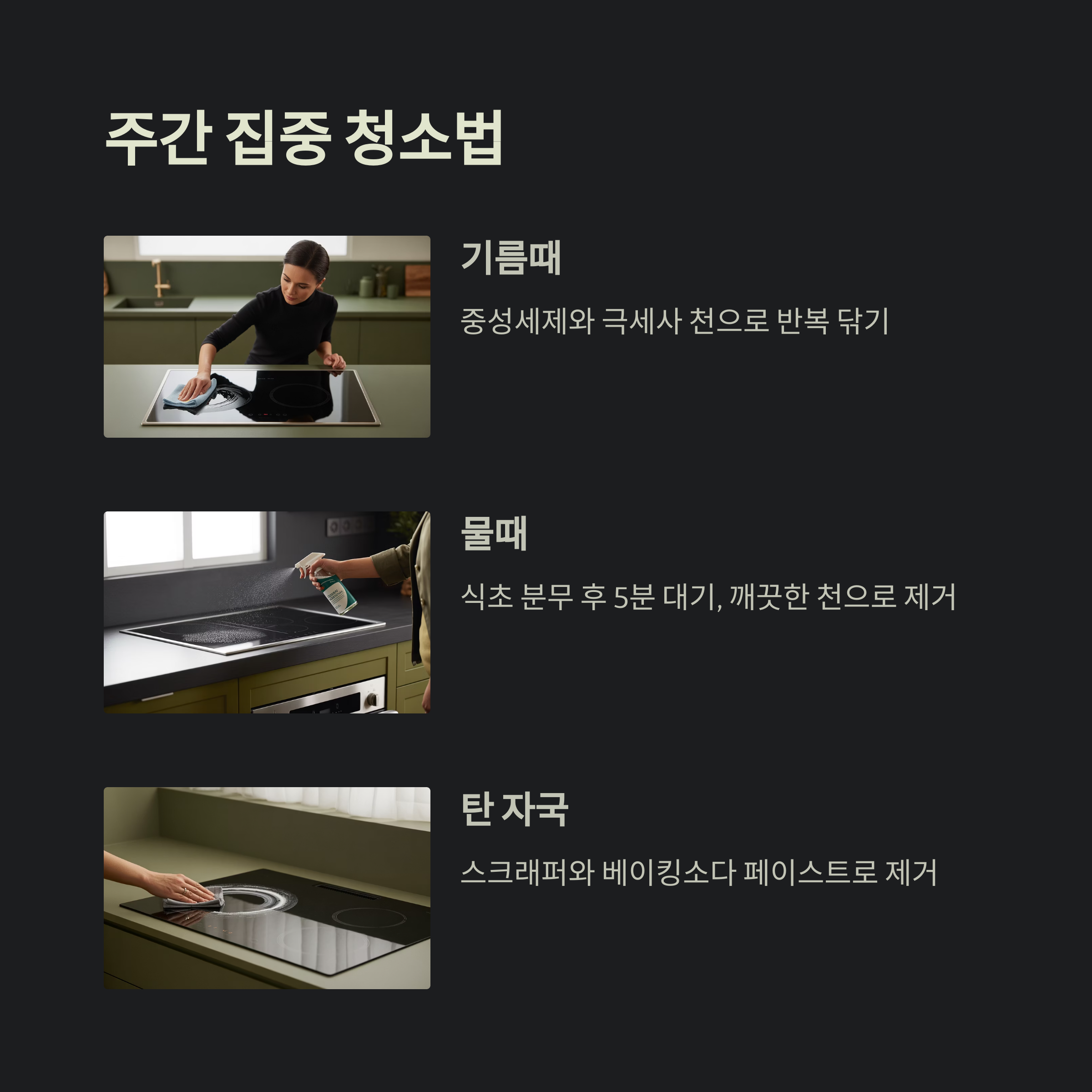 오늘부터 반짝이는 주방을 위해 인덕션 관리 루틴을 시작해 보세요!