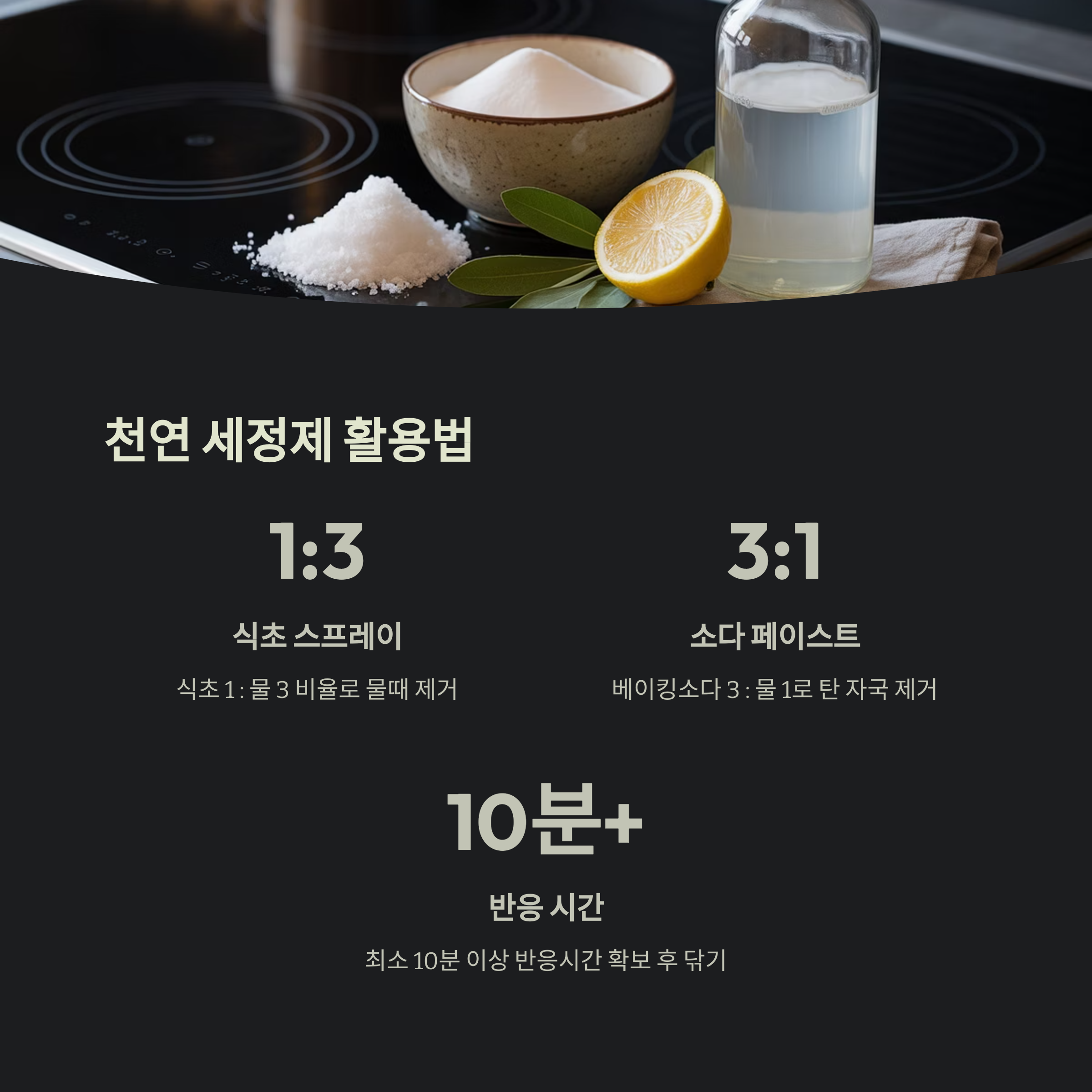 식초, 베이킹소다, 레몬은 인덕션 청소에 효과적인 천연 세제입니다.