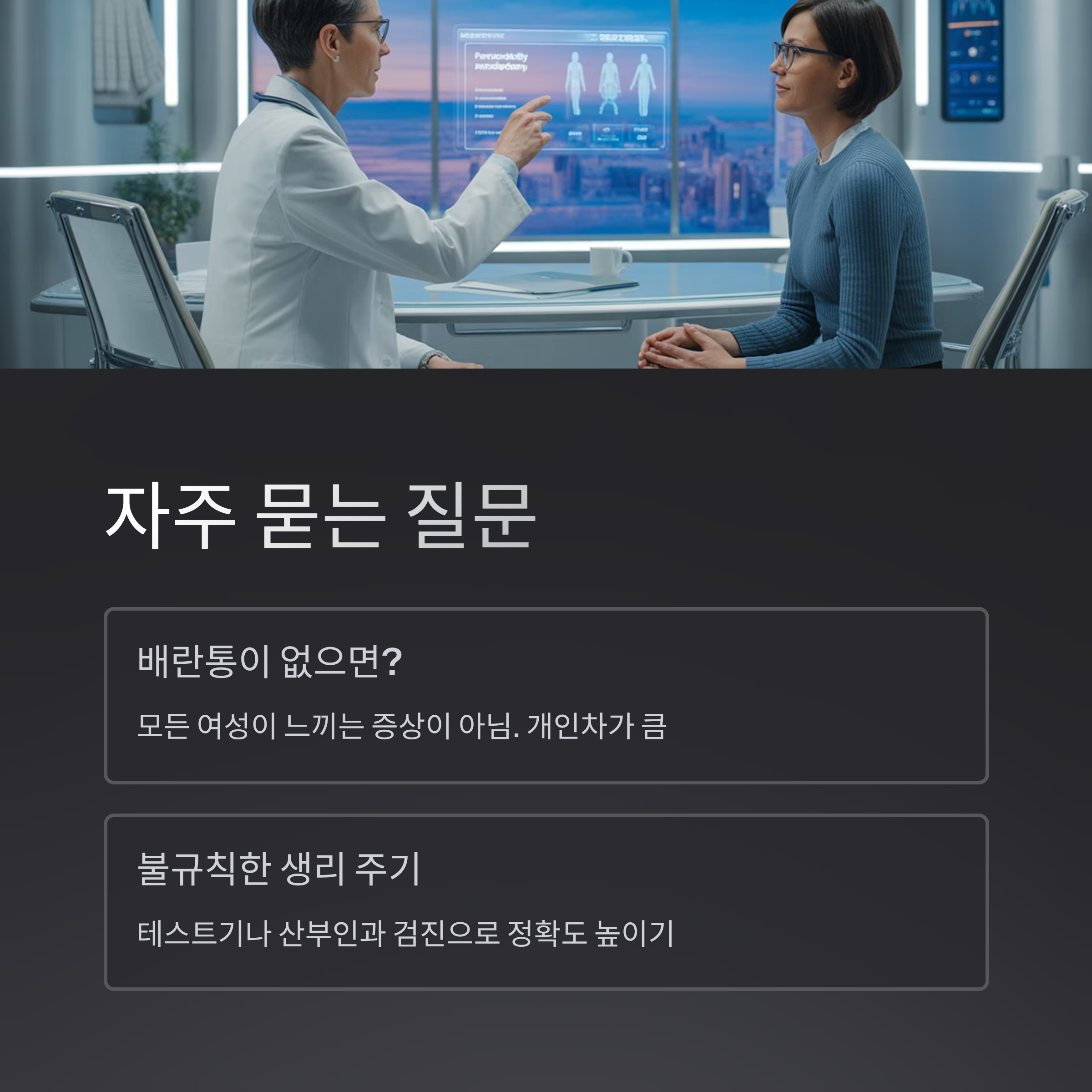 - Q: 생리 주기가 불규칙해도 배란일 예측이 가능한가요? A: 불규칙한 경우 자가 예측이 어려울 수 있습니다. 배란 테스트기나 기초 체온 측정, 또는 산부인과 검진을 통해 정확도를 높일 수 있습니다.