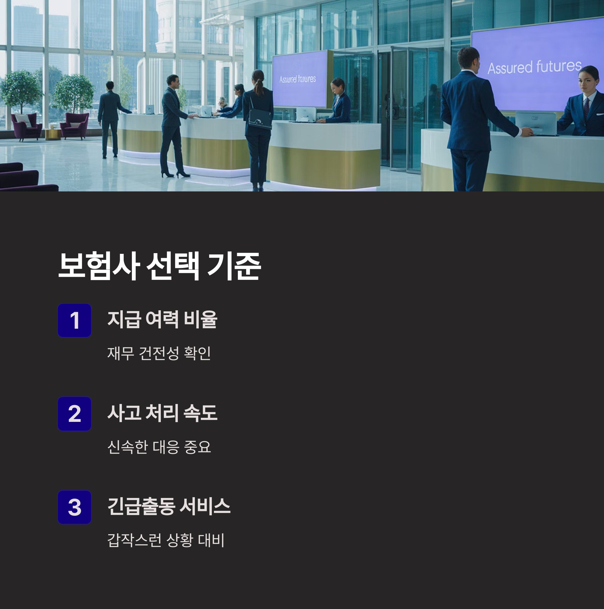 자동차보험 비교 시 보험료만 보고 덜컥 가입하면 후회할 수 있습니다. 보험사의 신뢰도와 서비스 품질도 중요한 선택 기준입니다.