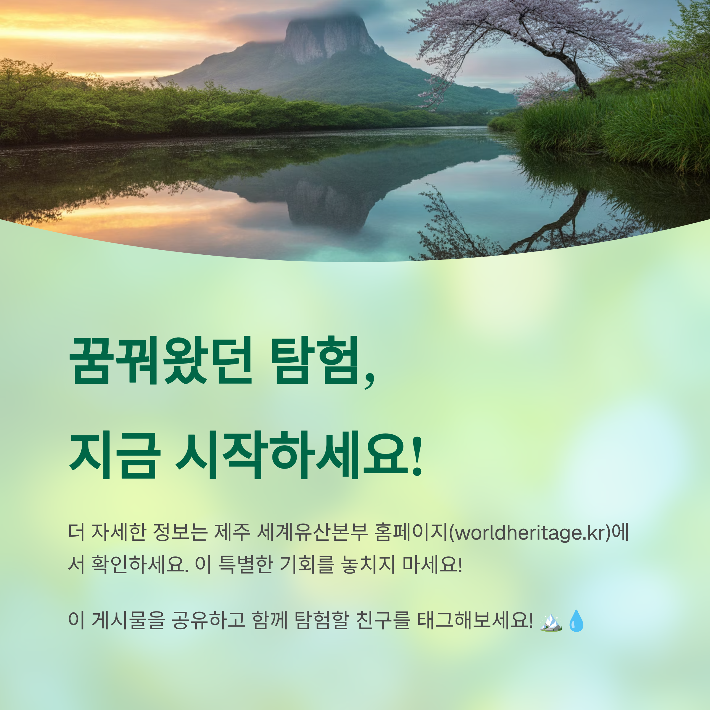 이번 백록샘 개방은 '2025 세계유산축전 – 제주 화산섬과 용암동굴' 프로그램의 일환입니다. 세계자연유산 제주의 가치를 널리 알리고, 지속가능한 보존을 위한 노력을 보여주는 이 축전, 다양한 프로그램들이 준비되어 있으니 함께 즐겨보세요!